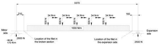 It must be also remarked that the rollers and the applied loads were not symmetrical (Figure 9); the distance between the bearing reaction point and the fillet radius at the expansion side was 30% shorter than in the motor side, leading to lower stress and explaining why cracking was observed only in one side of the rollers.