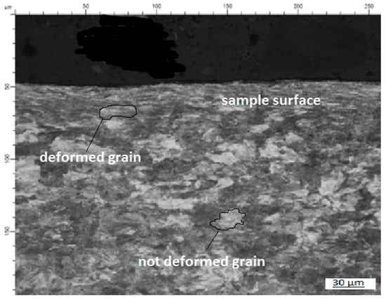 In products of metal forming and metal cutting processes, material properties in narrow layers near friction surfaces are usually very different from that in the bulk. The mechanisms responsible for generating such layers were discussed in []. These layers may have a positive effect on the performance of structures and machine parts under service conditions [,]. The influence of the layers on tensile strength and microstructure of fine drawn wires was discussed in []. One of the distinguished material properties within the layers is fine grain microstructure [,,,,,,,,,]. It is, therefore, reasonable to name these layers fine grain layers.