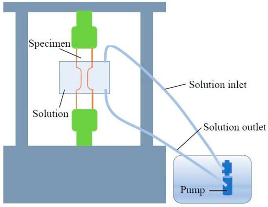 Schematic of the experimental set-up of the slow strain rate technique (SSRT) test.