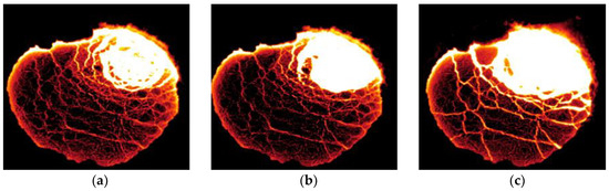 Open-eye size in the ladle from experimental results (Z = 3.37 m): (a) Q = 100 NL/min, (b) Q = 300 NL/min, and (c) Q = 500 NL/min.