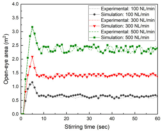 Comparison between experimental and simulation results of time-averaged open-eye area.