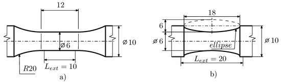 Specimen geometries: (a) uniform-gauge; (b) hourglass.