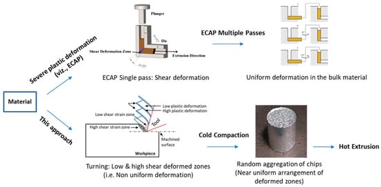 Mechanism of this approach vs. ECAP (equal channel angular pressing).
