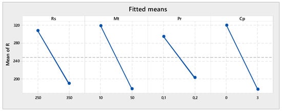 Main effect analysis of milling parameters: Rs, Mt, Pr, Cp for the experimental design.