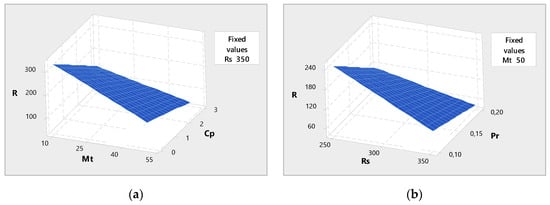 Interactions effects analysis among milling parameters: Rs, Mt, Pr, and Cp.