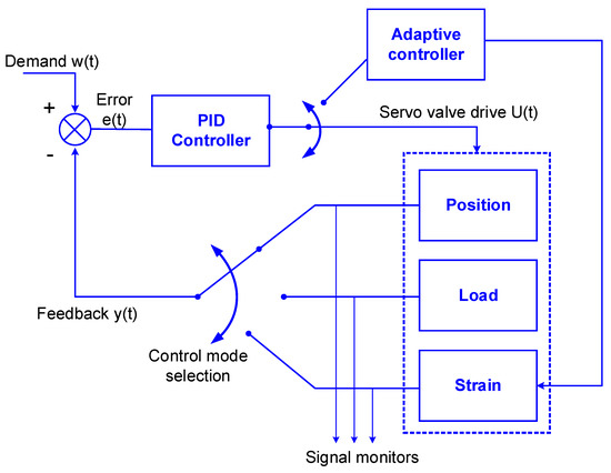 - Clarke, D.W.; Hinton, C.J. Adaptive control of materials-testing machines. Automatica 1997, 33, 1119–1131. [Google Scholar] [CrossRef]