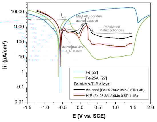 - Kim, J.; Buchanan, R. Pitting and crevice corrosion of iron aluminides in a mild acid-chloride solution. Corrosion 1994, 50, 658–668. [Google Scholar] [CrossRef]