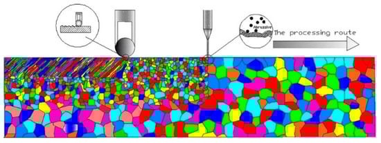 - Nikitin, I. Mechanical and thermal stability of mechanically induced near-surface nanostructures. Mater. Sci. Eng. A 2005, 403, 318–327. [Google Scholar] [CrossRef]