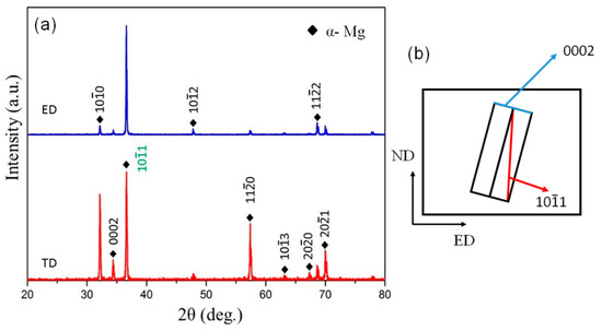 Texture analysis of XK105-H. (a) XRD patterns of XK105-H on ED and TD planes and (b) illustration of dislocation slip.