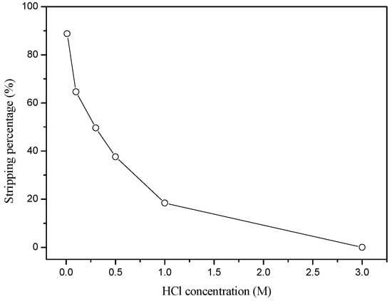 Effect of HCl concentration on the stripping of Ru(III) from the loaded Aliquat 336.