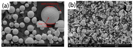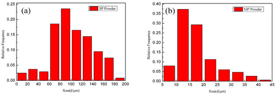 3.1. Characterization of the As-Atomized SP Powder and MP Powder