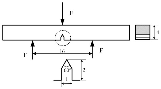 Figure 2. The sample size of plane fracture toughness test (mm).