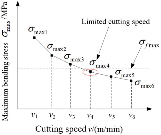 To avoid low-speed breakage, determine other parameters besides the milling speed, change the cutting speed, and obtain a maximum bending stress at each cutting speed, so that the maximum bending stress is less than the cutting speed value of the bending strength of the tool. The qualitative relationship between maximum bending stress and cutting speed is shown in Figure 20.