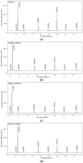 - Jatczak, C.F.; Larsen, J.A.; Shin, S.W. Retained Austenite and Its Measurements by X-Ray Diffraction. Soc. Automot. Eng. 1980. [Google Scholar]