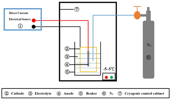 The electrolysis set-up is shown in Figure 2. The steel sample as the anode, the copper plate as the cathode, and the electrolyte consists of 1 pct 4-methyl ammonium chloride, 5 pct tri-ethanolamine, 5 pct glycerol, and 89 pct methyl alcohol (in volume fraction). During the electrolysis process, the current density was controlled for 40 to 60 mA/cm2 via a DC regulated power supply. The electrolyte was stirred with nitrogen gas to improve the kinetic conditions. After the electrolysis process, the sample was placed in ethanol for ultrasonic cleaning to obtain all particles. The carbide was separated by the ferromagnet from all particles in ethanol, and the residual inclusion particles were collected and placed on a double-sided conductive carbon tape for the electron microscope observation.