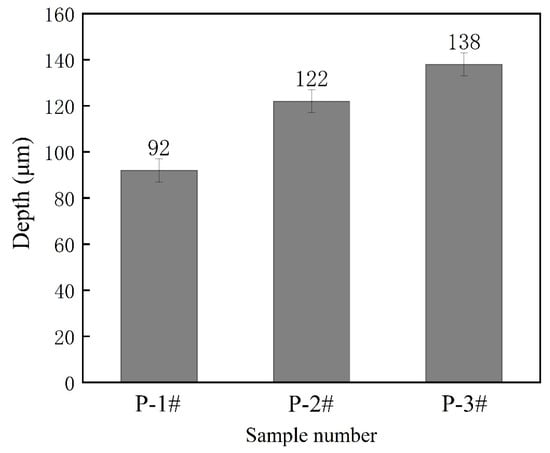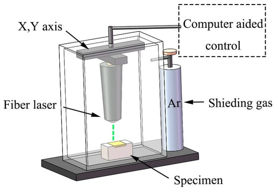 where , and represent laser power, spot radius, and scanning speed, respectively []. Therefore, as has been reported in the literature [,], high heating energy will not only introduce deep modified areas, but also evaporate some materials, such as Mn, Si, and Cr elements, especially in the center of the laser scanning path.