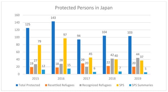 Ministry of Justice (Japan), 2018 Report on the Status of Refugee Protection in Japan (Wagakuni ni okeru nanmin higo no jōkyō-tō). Available online: http://www.moj.go.jp/content/001290415.pdf (accessed on 12 October 2019).