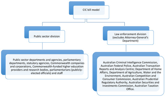 Bifurcation of the proposed CIC bill between public sector and law enforcement division.