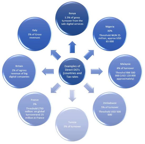 - Kelbesa, Megersa. 2020. Digital Service Taxes and Their Application. Institute of Development Studies. Available online: https://opendocs.ids.ac.uk/opendocs/bitstream/handle/20.500.12413/16968/914_Digital_Service_Tax.pdf?sequence=1 (accessed on 10 February 2022).