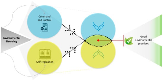 Hence, the initial assumption established in this paper was that environmental management mechanisms work together, complementing and strengthening each other. With this, we intended to stimulate a movement of approximating (Figure 1) processes of environmental licensing (command and control mechanism) to processes of self-regulation (good environmental practices).