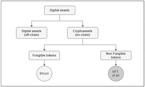 As seen in Figure 7, there are digital assets outside the blockchain and others within it, known as crypto-assets. These types of digital assets can be associated with digital or real-world assets. Since the main objective of this article is to establish the challenges involved in linking an NFT to the associated asset (which for this study is a digital artwork), the following sections address the technical linkage to subsequently analyze its legal recognition.