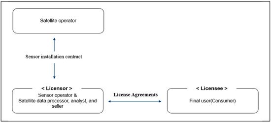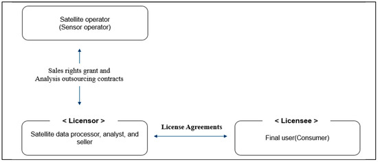 Observation satellites consist of a satellite bus equipped with remote sensing devices, such as sensors. While the standard model involves both the satellite bus and the sensors being owned by the satellite operator, in certain cases, a business entity may own only the sensors attached to a satellite operated by another party. Consequently, the provider of satellite data —the entity granting usage rights—may or may not be the satellite operator. In instances where the satellite operator does not own the satellite, they are categorized as a sensor operator who has installed sensors on the satellite. Alternatively, they may be a business that acquires raw satellite data from the satellite operator and then processes, analyzes, and sells them. Based on these distinctions, the types of satellite data licensors can be classified as follows: