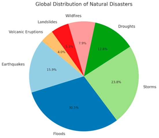 The most frequent natural disasters worldwide are floods and storms, exacerbated by climate change and urbanization. While earthquakes are less frequent, they remain among the deadliest, particularly in regions with high tectonic activity. Droughts and wildfires are increasing at an alarming rate, accelerating desertification and causing food crises, especially in Africa and South America. Volcanic eruptions and landslides, though more localized, have a significant destructive impact. These trends highlight the urgent need to strengthen infrastructure resilience and implement adaptive policies to address growing climate and geophysical risks (Figure 1).