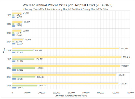 Average Annual Patient Visits per Hospital Level (2014–2022).