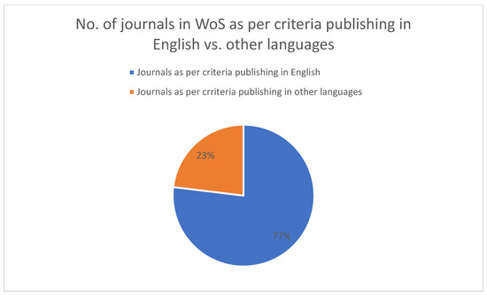 No. of journals in WoS as per criteria publishing in English vs. other languages [credit: original figure created by the author].