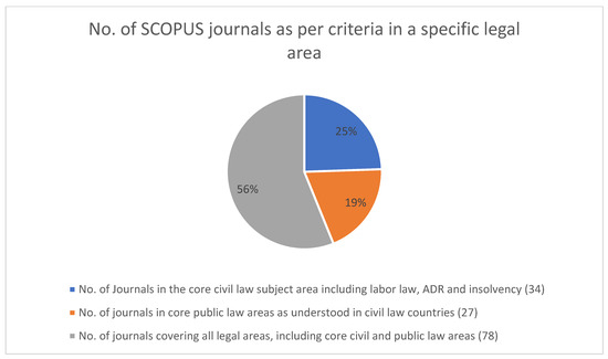 The difficult task is to find a list of journals where you can publish classic legal research from a purely national law perspective, on either civil law or public law. The term public law for the purposes of this paper is again understood from the perspective of civil law countries and the admittedly somewhat old-fashioned differentiation between public in private law, which is more systematically established in civil law (Rosenfeld 2013). As an author, you do not want to make any compromises in your research just to fit a certain indexed journal. The idea is to find journals that do not require the authors to make interdisciplinary research, comparative analysis, or an empirical analysis—just pure legal analysis of the law, legal jurisprudence, or a legal institute from a national perspective. You do not want to compare your country’s legislation with US or UK law, just because most of the journals indexed in WoS or Scopus are published in these countries. Sometimes the legal problem you analyze is not suitable for a comparison with a common law country, or it does not require a comparative analysis at all. Similarly, an empirical analysis, for example, on the social or economic impact of certain legislative changes might be appropriate for some topic but certainly not for all. The question that the study in the paper tries to answer is what options are available for such purely civil law publications, and how does this impact the university rankings?