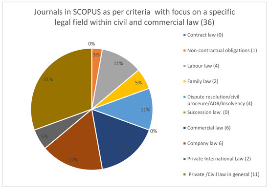 How many journals at all are publishing papers in specific areas of civil law and commercial law in Scopus or WoS?