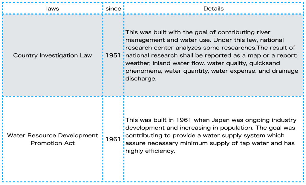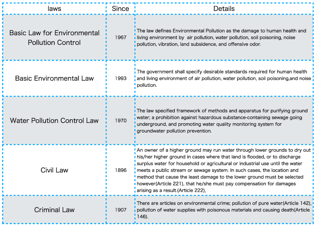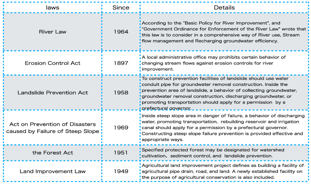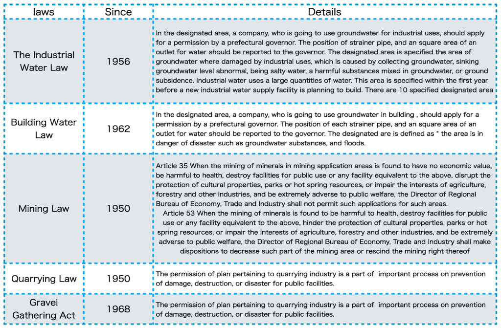 1]. In Japan, the law governing groundwater nationally is inadequately developed. We do not even have a water laws. We only have a river law and several other regulations (see