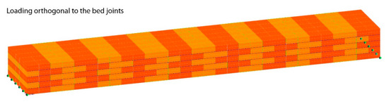 Finite Element Model (FEM): constraints of a beam made by five layers of solid clay bricks 60 mm thick for loading orthogonal to the bed joints.