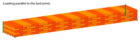 Finite Element Model: constraints of a beam made by five layers of solid clay bricks 60 mm thick for loading parallel to the bed joints.