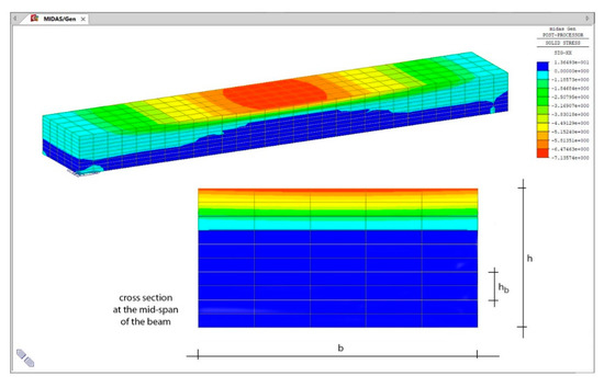 Distribution of normal stresses [MPa] in the mid-span cross-section of the FEM masonry beam.