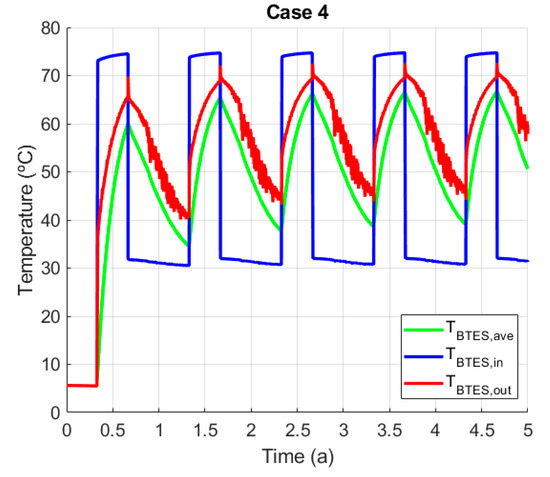 Figure 15 displays the hourly temperature development in the BTES for case 4.