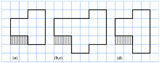 Scheme of the classroom modules of the “P3” schools: (a) two classrooms placed in one floor; (b) three classrooms placed in one floor; (c) six classrooms placed in two floors; (d) four classrooms placed in two floors.
