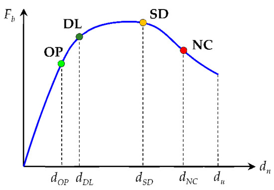 The EC8-3 only establishes three LS to be checked, namely: Damage Limitation (DL), Significant Damage (SD), and Near Collapse (NC). However, in the context of the PERSISTAH project, a fourth LS was also established (Figure 14): Fully Operational (OP). This LS will also probably be presented in the next generation of the Eurocode 8 [31,32], as it is already presented in the newest Italian seismic code, the NTC 2018 [33,34].