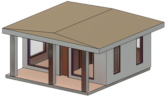 The developed framework was utilised on the envelope insulation design of a house located in Sydney, Australia. The case study has a total floor area of 59.4 m2 and is built on a slab-on-ground. The house has a pitched roof with ceiling lining under timber rafters and adopts the brick veneer external wall system, which is the most common wall construction method used in Australian dwellings [67]. Figure 9 and Figure 10 are the BIM model and the floor plan for the case study.