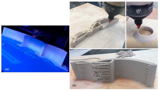 Jia et al. [91] discuss how geopolymer and geopolymer-based composites could be applied in 3DP due to the low-temperature molding, cheaper cost and eco-friendly properties. For instance, 3DP can accept the aluminum–silicon acid polymer system.