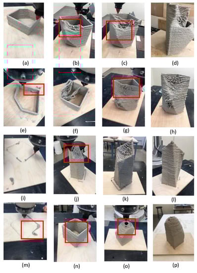 Ma et al. [19] develop some criteria for producing an optimized cementitious mixture, including shrinkage, extrudability, flowability, setting time, buildability and mechanical properties (refer to Table 7). For example, the control of extrudability tends to achieve a round shape, smooth grading and tiny particles, which is akin to self-compacting concrete. Figure 8 shows examples of deformation and issues in the final product, as part of experiments conducted by Shi et al. [78] and Tahmasebinia et al. [3].