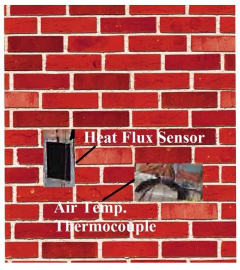 - Luo, C.; Moghtaderi, B.; Hands, S.; Page, A. Determining the thermal capacitance, conductivity and the convective heat transfer coefficient of a brick wall by annually monitored temperatures and total heat fluxes. Energy Build. 2011, 43, 379–385. [Google Scholar] [CrossRef]