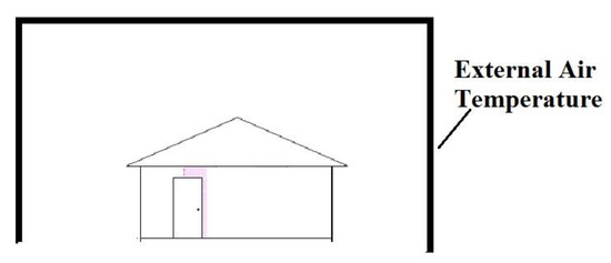 To calculate the new external air temperature that triggers an identical volume of convection heat losses to that of wind, the following equation of convective heat transfer was utilized [29], Equation (3)