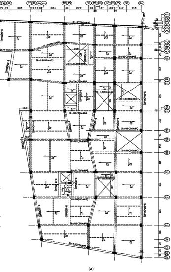 Frame plans of two case study buildings: (a) concrete frame and (b) steel frame.