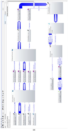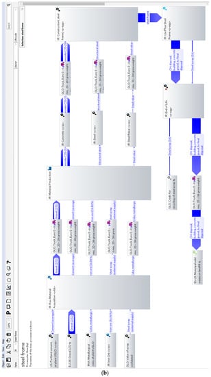 GaBi life cycle assessment (LCA) processes: (a) concrete building and (b) steel building.