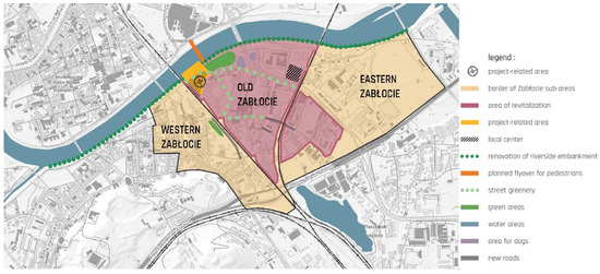 - Cracow Municipal Office-Urząd Miasta Krakowa; The Institute of Ecology of Industrialised Areas in Katowice-Instytut Ekologii Terenów Uprzemysłowionych Katowice. Local Programme of Zabłocie Regeneration-Lokalny Program Rewitalizacji Zabłocia; Cracow Municipal Office-Urząd Miasta Krakowa: Cracow, Poland; The Institute of Ecology of Industrialised Areas in Katowice-Instytut Ekologii Terenów Uprzemysłowionych Katowice: Katowice, Poland, 2008; pp. 1–71. [Google Scholar]