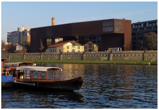 Historic housing development of the district of Podgórze is undergoing gradual regeneration (Figure 11). In the area of post-industrial Zabłocie, there is one of the most important historic objects, namely, Oskar Schindler’s Enamel Factory (Figure 12). The owner of the factory rescued Jews from the Holocaust during the Second World War, which was shown in the film “Schindler’s List” made in 1993. The Municipal District Authorities incorporated this building into the Historical Museum of the City of Cracow (Muzeum Historyczne Miasta Krakowa) in 2005. The permanent exhibition held in this place “Cracow–Under Occupation 1939–1945” received an award for the best historical exhibition in Poland in the contest ‘Sybilla 2010′. Monthly, as many as 15–20 thousand tourists from all over the world visit this exhibition [21].