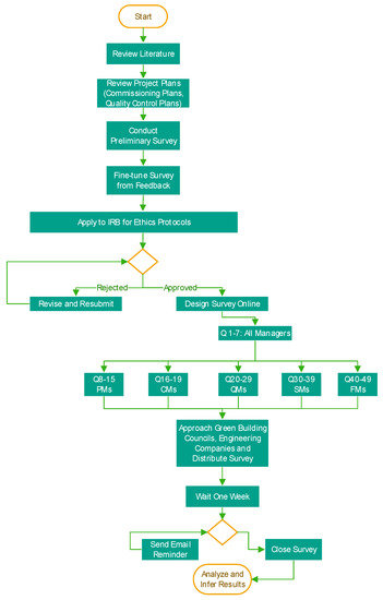 A preliminary survey was presented to 2 professionals of almost 15 years of quality management experience in green buildings to appraise the questions on ranking of quality consequences and the quality activities chosen (Q20–29 which were repeated also for Construction Managers, Facility Managers, and Project Managers). The professionals agreed on the questions mentioned and added two more items for measuring complexity level in costing quality activities: “Power surges affecting building management system from software glitches causing the water systems’ cistern malfunction” and “6 month chemical and bacterial tests for drinking water supplies”. In addition, an application to the Institutional Review Board (IRB) was submitted to ensure that the questions in the survey comply with the local codes of conduct and ethics as well as ensuring the respondents’ profiles and companies remained confidential.