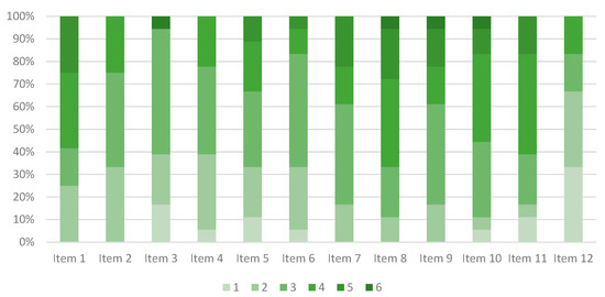 To test the extent to which the QMs and FMs were capable of readily costing preventative, appraisal, or rework actions, a series of items was presented with a six-point Likert scale to evaluate each item in terms of its level of complexity. The scale ranged from Very Simple (1) to Not Feasible (6). The questions were derived from green-building projects’ quality plans, commissioning plans [44,45,70], and studies based on the CoQ [23,24,25]. The included quality activity items were costs accounted with rectifying non-conformance through construction rework (item 1); costs accounted with rectifying non-conformance through design rework (item 2); total cost for QA/QC personnel for a specific task (i.e., activity-based costing) (item 3); inspection costs for extra low voltage systems (e.g., HVAC and lighting control) (item 4); revising design drawings to achieve code compliance before issuing issue for construction designs (item 5); testing and balancing of water systems (item 6); factory tests for high voltage switchgears (item 7); repair of green-building technology defects after handover (e.g., HVAC/greywater system/rainwater system) (item 8); indoor humidity and mold growth from ventilation (item 9); installation errors from inexperienced sub-contractors (item 10); and power surges affecting software glitches for building automation systems causing water systems’ cistern malfunction (item 11). The internal consistency of the questions helped ensure that the overall complexity was reflected when evaluating the quality performance with Cronbach’s Alpha (α): α ranged from 0 to 1, and the higher values indicated a greater internal consistency and (ultimately) reliability. The results exhibited a value of 0.745, which indicates a fair consistency. This represents the complexity level in the quality performance evaluation. The complexities of various items are presented in Figure 8.