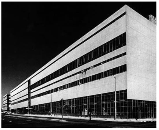 The FIX brewery company was founded in 1864 by Johann Karl Fix in Athens and shortly became one of the major breweries in Greece. In 1860, in the face of growing demand, the FIX Brewery moved its facilities to Andrea Syngrou Avenue in Koukaki, an Athenian southeastern district, with no clear signs of growth at the time. Around 100 years later, the FIX Brewery administration agreed to upgrade the industrial premises in order to meet the opportunities presented by industrial development and growth in Greece. The new premises were complete in 1961 (Figure 2). In an attempt to create a flexible industrial building that can be modified and adjusted to future industrial uses, architect Takis Zenetos and his colleague Margaritis Apostolidis embodied the principles of the modern architectural movement. The new industrial construction soon became a historic landmark of both modern architecture as well as Athens. However, just ten years later, FIX Brewery production was relocated far from the downtown area, and the iconic building became abandoned.